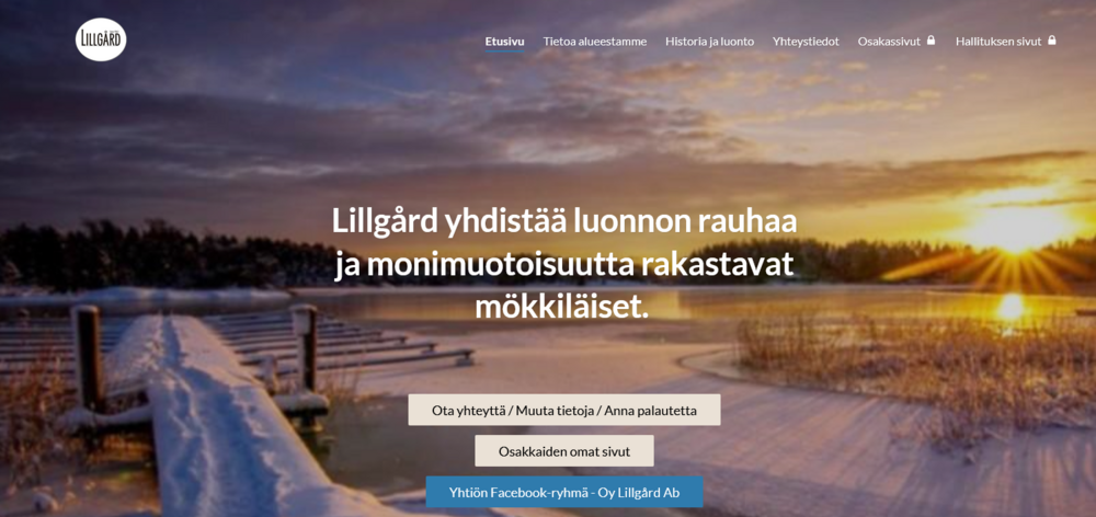 På webbplatsen www.lillgard.fi har det byggts separata sidor för delägare samt en arbetsyta för styrelsen. Alla verktyg (register, kommunikation och fakturering) har tagits i bruk nästan fullt ut. Bilden fungerar som länk.